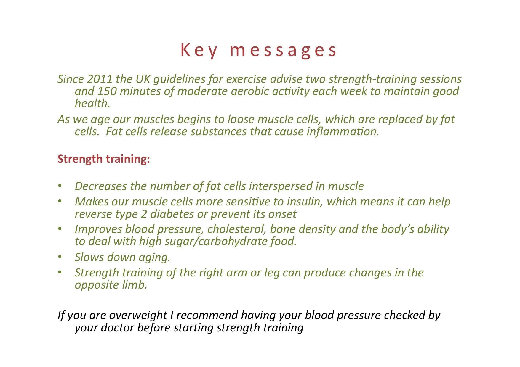 For almost 20 years people in the United States of America have been advised to do Strength training twice a week, in addition to their weekly 150 minutes of aerobic exercise. It was only in 2011 that exercise guidelines in the United Kingdom caught-up...